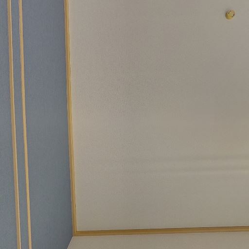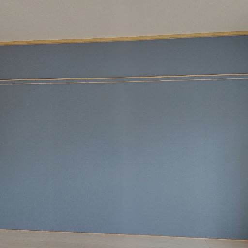 • アクセントクロスとピクチャーレール(確度83%):一面がブルーのアクセントクロスで、上部に長いレールが通っている。