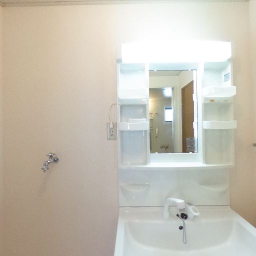 • タオル掛け・コンセント等の設備(確度74%):タオルバーや洗面横のコンセントが確認できる。