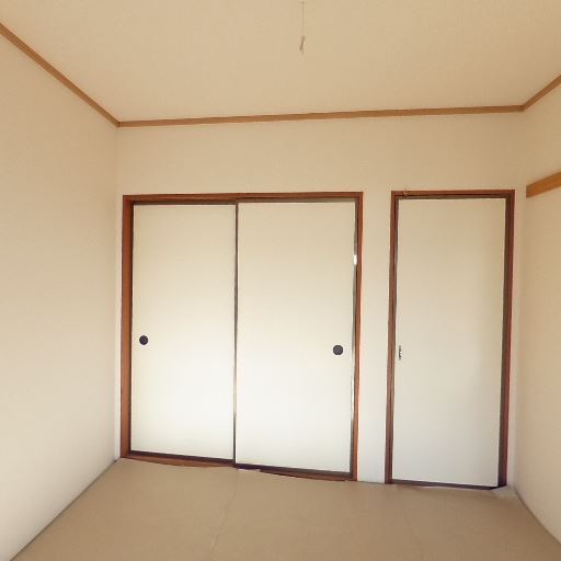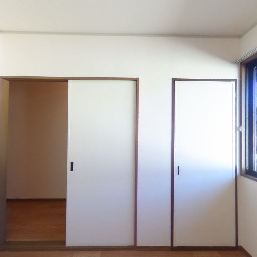 • 収納が充実(確度83%):引き戸の押入れと片開き扉の収納が壁面に並んでいる。