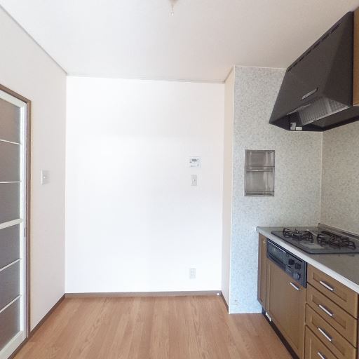 • ダイニング設置スペース(確度67%):キッチン横に何もない壁面と床の空きがあり、小さめのダイニングテーブルが置けそう。