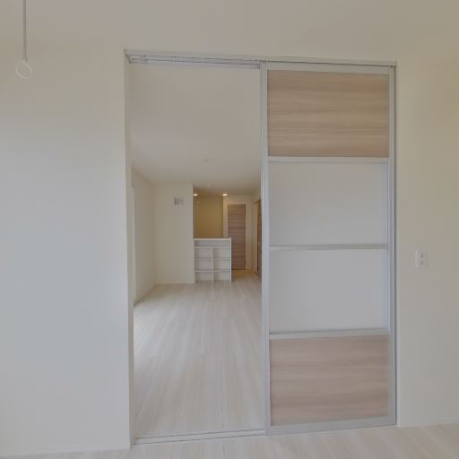 可動間仕切り扉(確度83%):木目と白面のスライド扉で空間を仕切れる。開口が広く、開ければ隣室と一体的に使えそう。