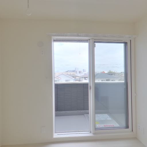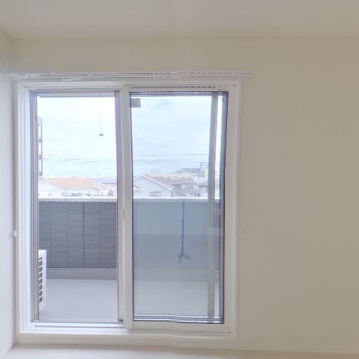 採光と眺望(確度90%):大きな掃き出し窓とバルコニーがあり、外の景色が抜けていて明るい印象。