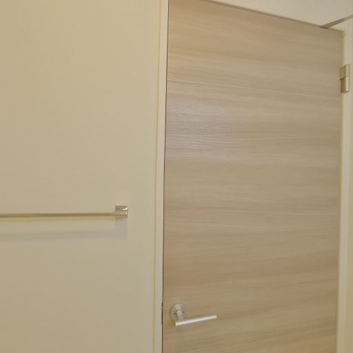 タオルバーの設置位置(確度70%):側壁にシンプルなタオルバーが取り付けられている。