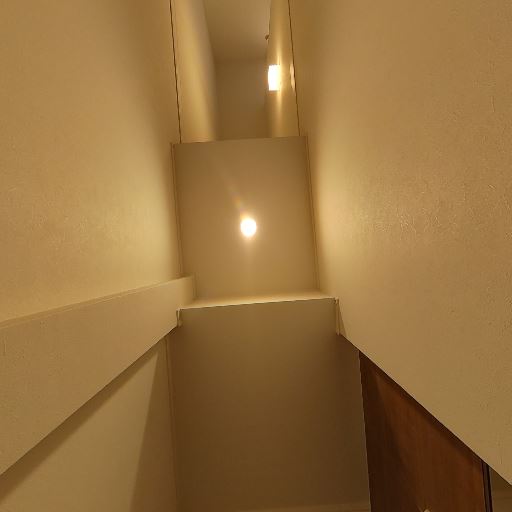 • 階段ホールの採光(確度82%):天井にトップライト(採光窓)があり、昼間の自然光が期待できる。照明もダウンライトが設置されている。