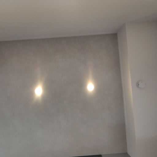 • 壁面のアクセントと間接照明(確度70%):グレー系のアクセントウォールにブラケット照明が2基。雰囲気づくりが可能。