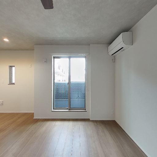 • 採光と通風(確度82%):大きめの掃き出し窓と小窓があり、日中の明るさと風通しが期待できる。バルコニーも確認できる。