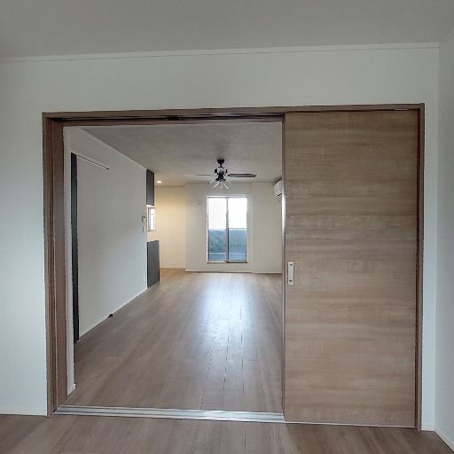 • 居室との続き間(確度73%):引き戸の先に広いリビングが見えるため、可動間仕切りで区切られた続き間の一室と推測。
