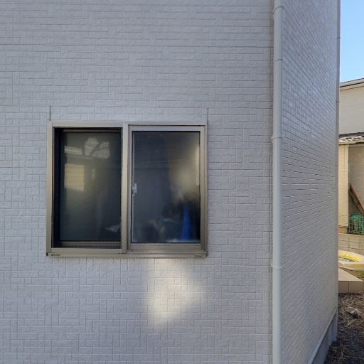 外壁・窓の状態(確度69%):外壁サイディングとサッシは比較的きれいだが、一部汚れや日焼けが見える。面格子付きの窓もあり防犯性は高め。