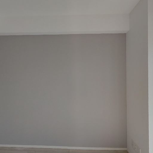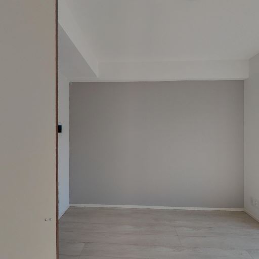 アクセントクロス(確度70%):一面がグレーのアクセントクロスで、他の白壁とコントラストがある。