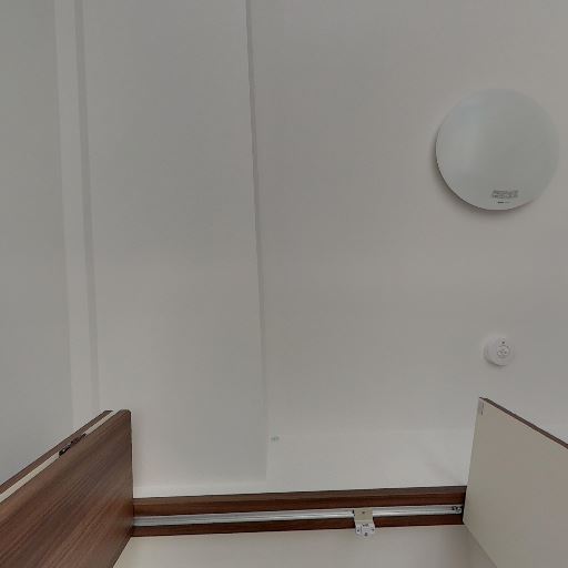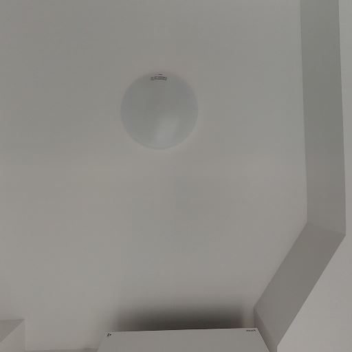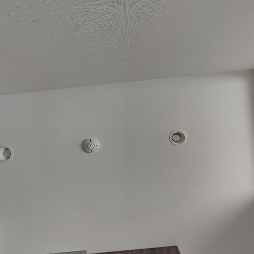 天井設備(確度82%):ダウンライトと火災報知器が確認できる。天井は白でフラット。