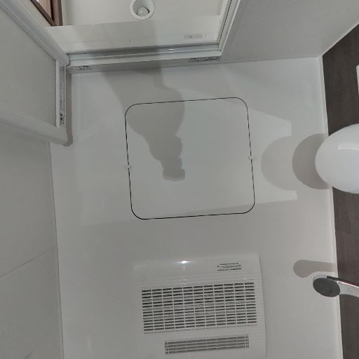 清掃口と床の状態(確度78%):床面に点検口があり、全体的に汚れやカビの跡は見当たらない。