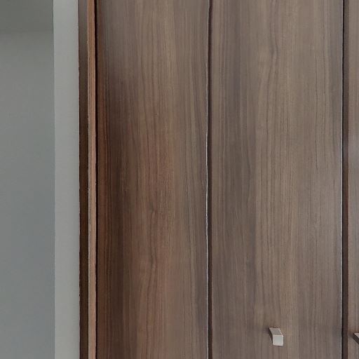 シューズ収納の充実(確度86%):木目の大きめクローゼットが玄関脇に設置されており、縦に高さがある。