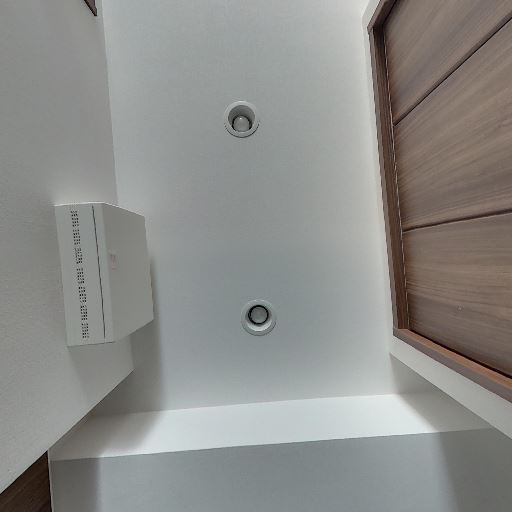 照明・天井設備(確度82%):天井にダウンライトが2灯あり、配電盤(もしくは弱電盤)も見える。