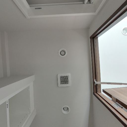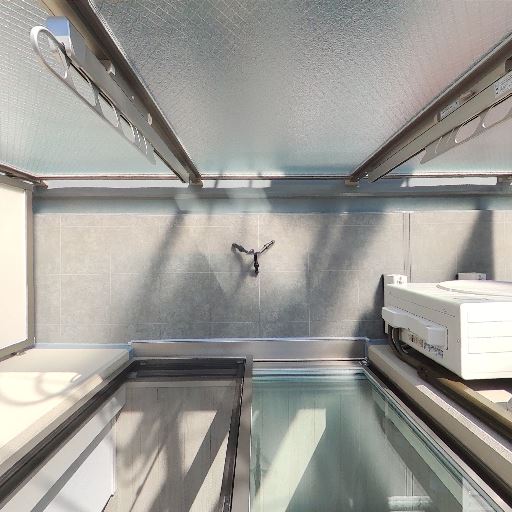 上部の庇と換気口(確度69%):天井側にしっかりした庇と複数の換気口がある。多少の雨でも洗濯物が濡れにくい可能性。
