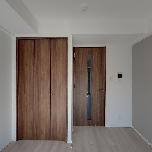収納が充実(確度78%):居室内に幅広のクローゼット扉があり、一般的な衣類や日用品を収められそう。