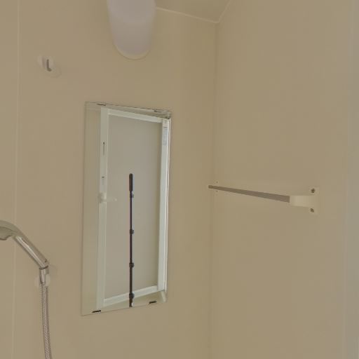 浴室内の棚・タオルバー(確度62%):タオルバーが設置されている。収納棚は見当たらない。