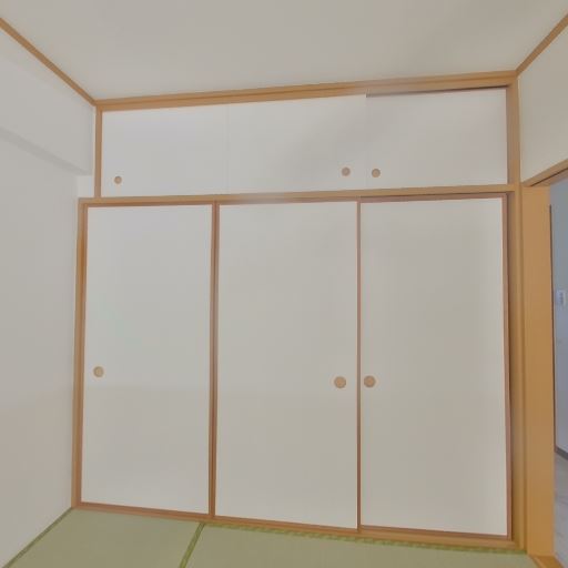 収納が充実(確度91%):天袋付きの押入れが壁一面にある。布団や季節物の収納に十分な容量。
