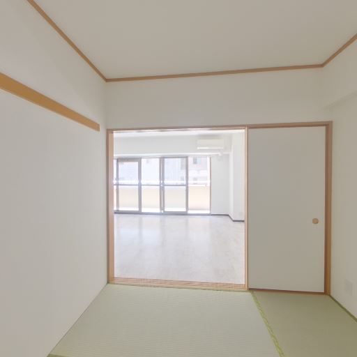 和室とリビングが続き間(確度88%):畳の和室からフローリングのリビングへ引き込み戸でつながっている。開け放てば一体空間として使えそう。