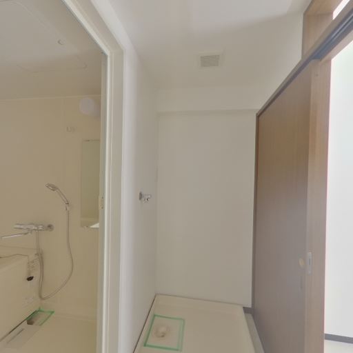 浴室と洗濯機置き場が近接(確度82%):左側に浴室、右側に洗濯機パンと思われるスペースがあり、家事動線が短い。