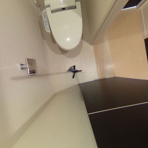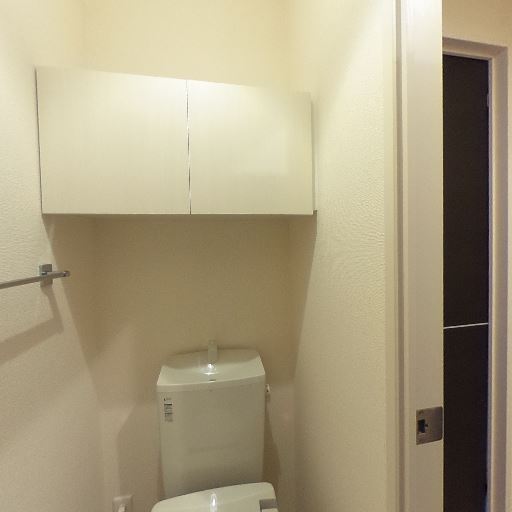 • トイレ上部の収納(確度90%):便器上に吊戸棚があり、トイレットペーパー等の収納が可能。