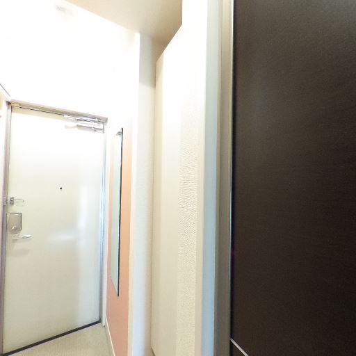 • 鏡付きの玄関ニッチ(確度76%):玄関側の壁に全身が映りそうな縦長のミラーが設置されている。