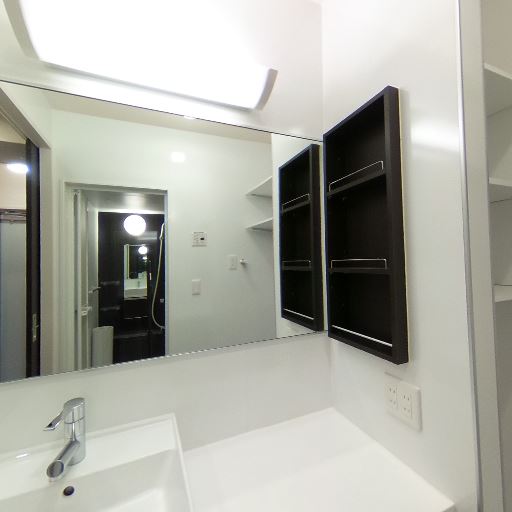 • 収納が充実(確度86%):可動棚やミラー裏収納が確認できる。