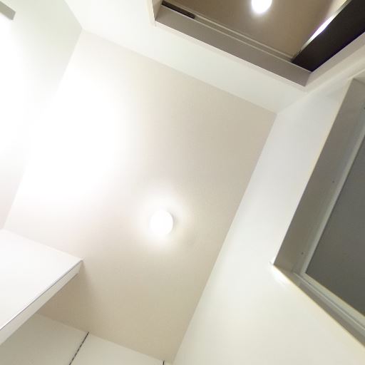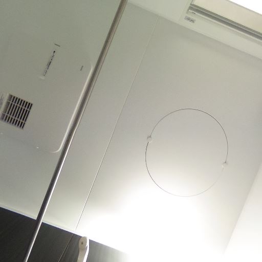 • 換気設備とダウンライト(確度80%):天井に換気扇と埋込照明があり明るさ・換気は良好そう。
