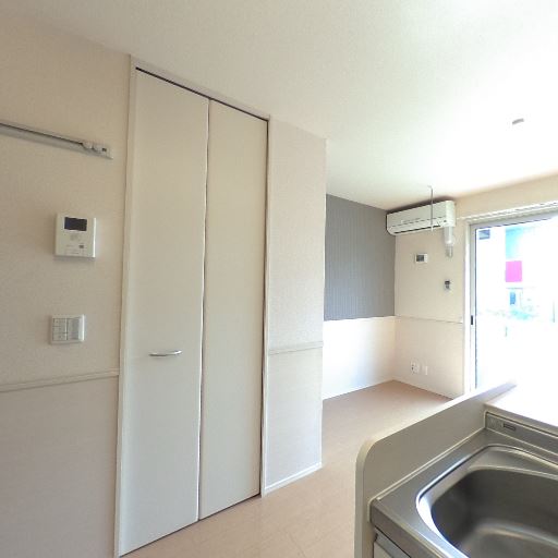 • キッチンとダイニングの一体空間(確度79%):シンクとIHコンロのあるキッチンから、エアコンとクローゼットのある居室スペースへ視線が抜ける配置。対面気味で調理しながら室内を見渡せる。