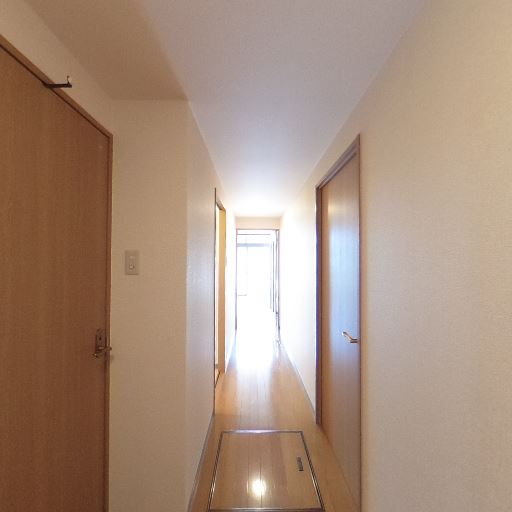 • 床下収納または点検口がありそう(確度73%):廊下床面に四角いハッチ状の開口部が見え、床下収納または点検口が設けられている可能性がある。