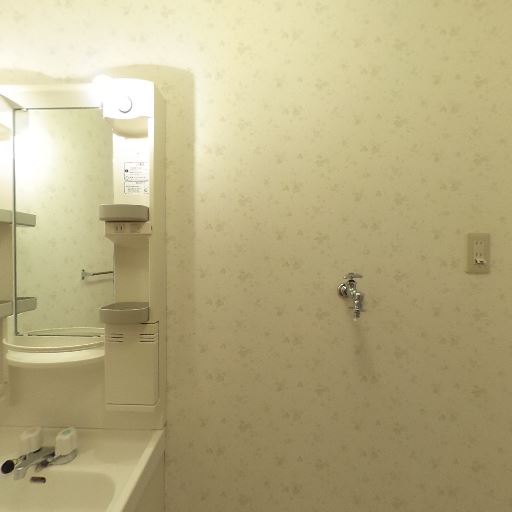 • 室内洗濯機置き場がある(確度98%):壁面の給水栓と床の防水パンが確認でき、洗濯機置き場が室内に設けられている。