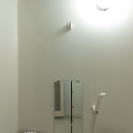 • 鏡とシャワーがあり最低限の入浴設備は揃っている(確度86%):壁面に縦長の鏡とシャワーヘッドが確認でき、日常利用に必要な基本設備は揃っている。豪華さはないが実用性重視の構成。