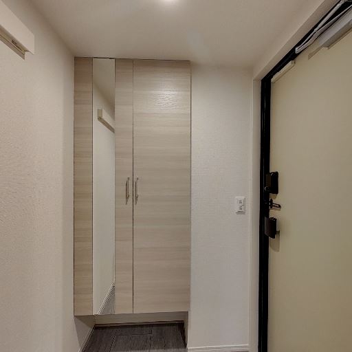 • 廊下幅はややタイト(確度67%):玄関から続く廊下は片側が収納・片側が壁で、幅はやや狭めに見える。大きな荷物を運ぶ際は注意が必要。