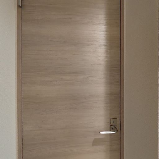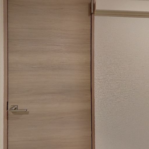 • 室内ドアは新しめで統一感あり(確度80%):木目調のドアが複数面にあり、ハンドルや枠も同系色で揃っている。損傷は見当たらない。