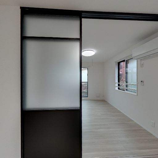 • 間仕切りスライドドア(確度82%):半透明パネルのスライドドアがあり、空間を仕切れる。
