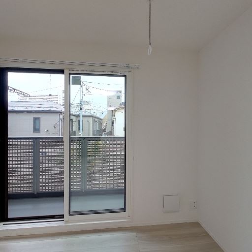 • バルコニー付きの大きな掃き出し窓(確度86%):床までの掃き出し窓と手すりのあるバルコニーが見える。室外に物干しなども可能そう。