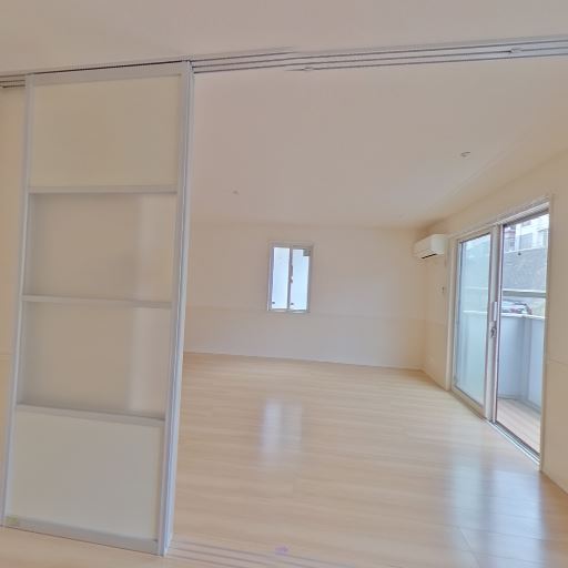 引き戸で仕切れる可動間仕切り(確度82%):right画像に天井レールと大型の引き戸が見え、空間を2部屋に仕切れそう。