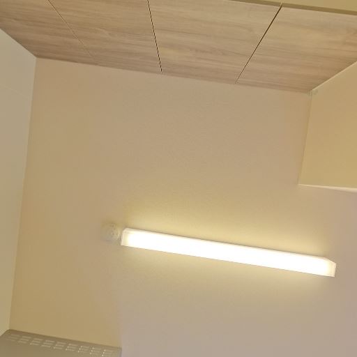 照明と換気設備あり(確度90%):天井にダウンライトと換気口が確認できる。