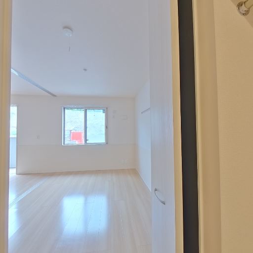 居室との動線(確度70%):開口部の先は明るい居室につながっており、出入りしやすい引き戸(または開き戸)の気配。