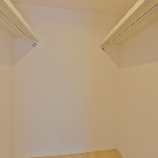 ウォークインクローゼット(確度90%):左右にハンガーパイプと棚が設置された小部屋状の収納。奥行きがあり衣類を掛けて収納できる。