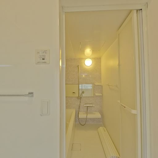 浴室換気乾燥の装備(確度76%):天井に換気口があり、浴室換気乾燥機と思われる設備が見える。