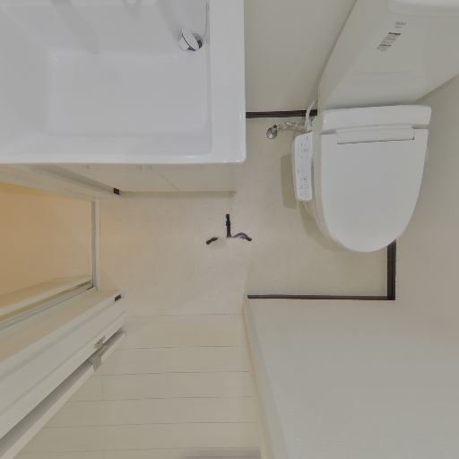 洗濯機置き場の位置(確度86%):洗面台横の床に給水・排水口があり、洗濯機置き場が確保されている。
