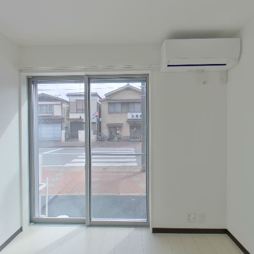 エアコン設置済み(確度95%):窓の右上に壁掛けエアコンが設置されている。