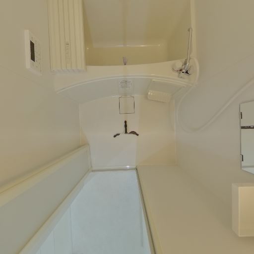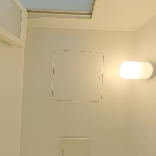 浴室乾燥・換気の有無(確度69%):天井に換気口(点検口付近)と照明が確認でき、換気機能があるとみられる。