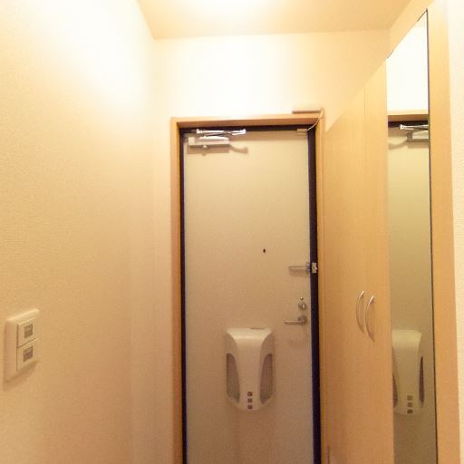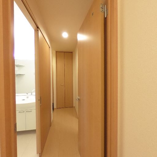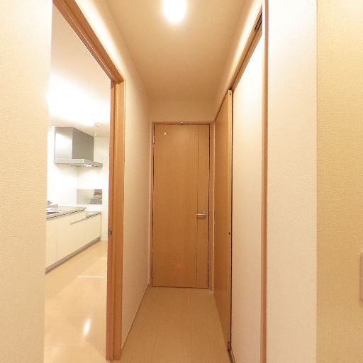 玄関から廊下・キッチンへ動線がつながっている(確度91%):玄関ドアから細い廊下が伸び、途中でキッチン空間へ接続している構成が確認できる。生活動線は把握しやすい。