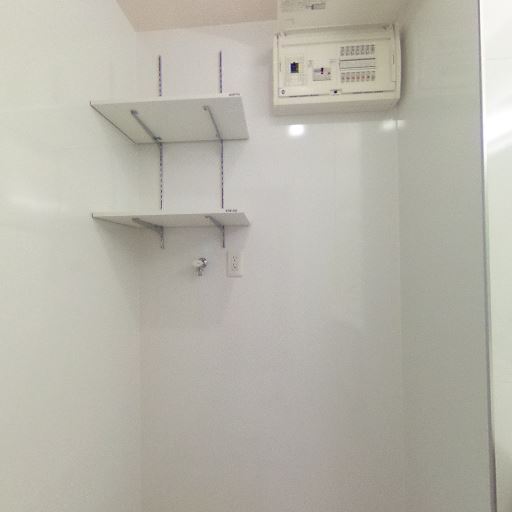 室内物干しまたはピクチャーレールらしき設備がある(確度62%):右側壁面の高い位置に細長いレール状の設備があり、室内物干し用または吊り下げ用設備の可能性がある。