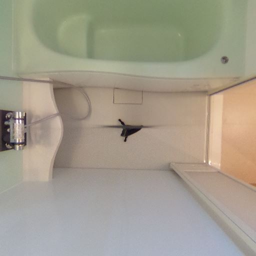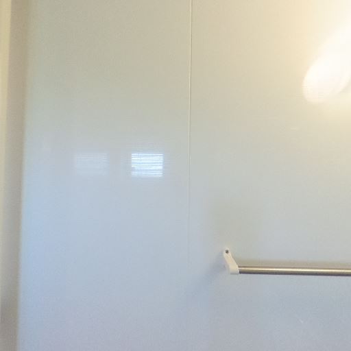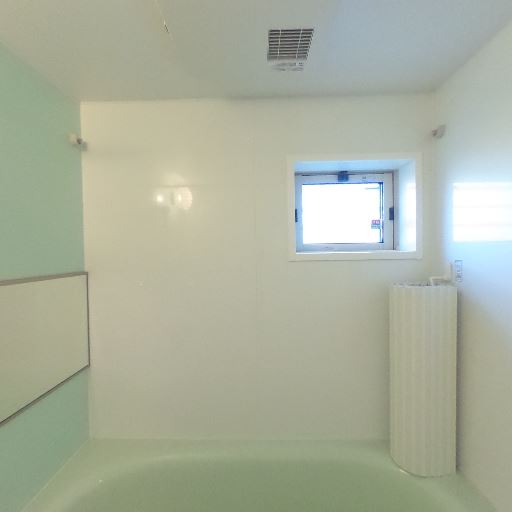 清潔感のあるユニットバス(確度84%):壁・浴槽・床まわりが明るい色味で統一されており、全体として清潔感のある印象を受ける。大きな汚れや破損は目立たない。