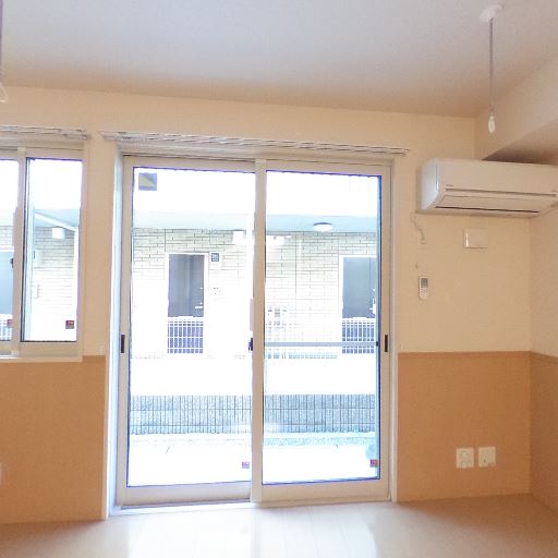 エアコン設置済み(確度95%):壁上部にエアコンが確認でき、入居後すぐに空調を使える状態と見られる。