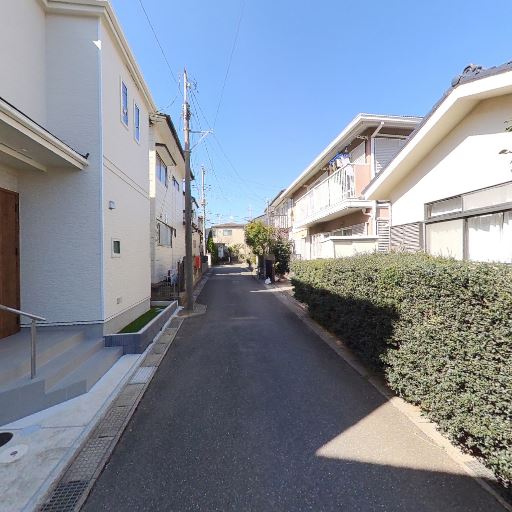 前面道路はやや狭めの生活道路(確度83%):車がすれ違いにくい幅の舗装道路で、住宅街の路地状。駐車車両があると通行は注意が必要。