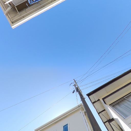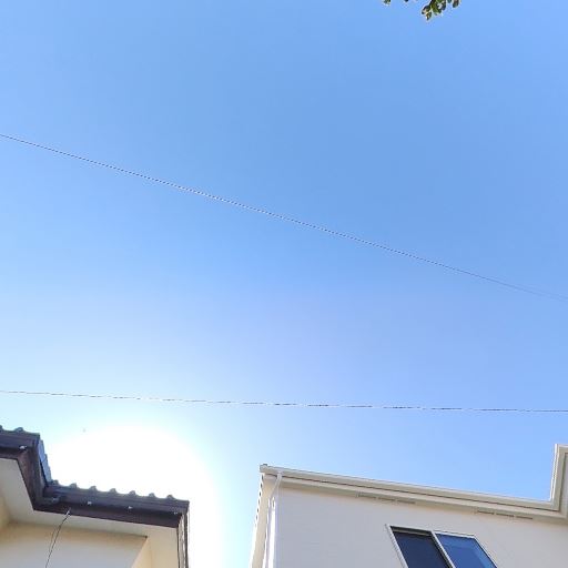 日当たり良好の可能性(確度71%):影がくっきり出ており、空が開けている。周辺も低層住宅地で日照を得やすい。