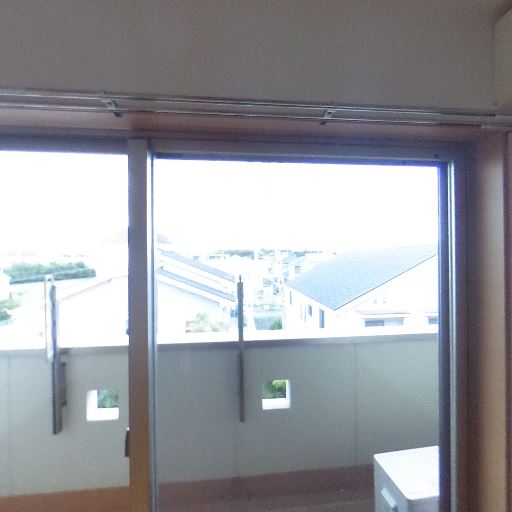室内物干し・カーテンレールの設備(確度72%):窓上にカーテンレールと物干しポール受けが見える。